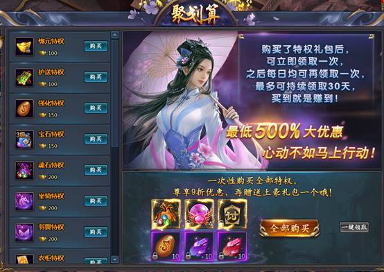 首充是一定要买的!前期送绝版橙武,没有这个之后的武器部位提升也无法进行下去了,首充赠送的白银特权增加各种经验加成,帮助您更快升级。