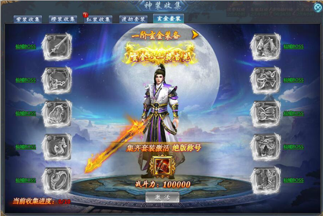 1、增加玄金套装收集(全身装备彩炼开启)