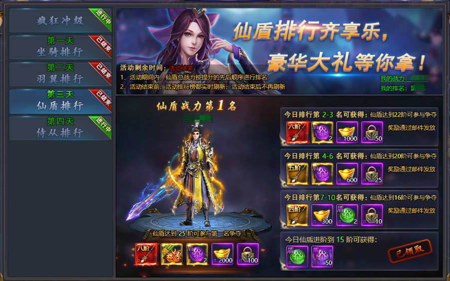【仙盾排行】 开服第三天活动