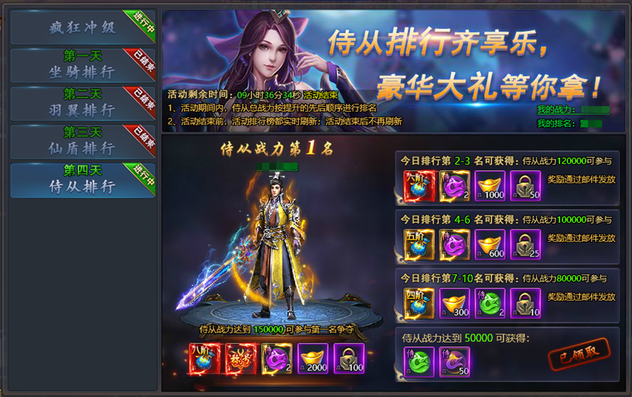 【侍从排行】 开服第四天活动