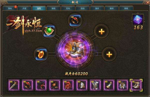 人靠衣装,佛靠金装,如果在装备上镶嵌宝石,不仅美观,还能提升人物实力,在《一剑永恒》中,每件装备可镶嵌5个宝石(按照等级开放),宝石类型分为为“生命宝石、攻击宝石、防御宝石、守护宝石、力量宝石”,消耗2个低级的宝石可合成高一级的宝石,宝石可通过商城和活动等获得。