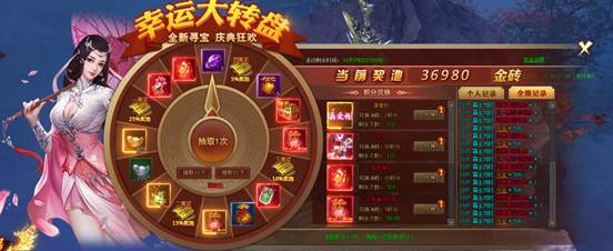 活动期间玩家通过参与幸运大转盘,即有机会获得金砖奖池中的金砖奖励!没有上限!!!抽到就是赚到!!!