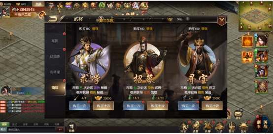 通过武将系统中的的酒馆功能主公可以进行武将招募、技能抽取和装备、符文抽取